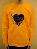 イタリアではメジャーなスポーツウェアメーカーで、様々な競技のユニフォームなどを手掛けるパンツェリ。企業や地方自治体などのオフィシャルTシャツも手掛けるフットワークの軽さが売りです。しかもイタリア生産でこの価格。他では真似の出来ないコストパフォーマンスを誇ります。この長袖Tシャツはスペインにほど近い南仏のコサードという街にある肉屋さんのもの。きっと牛肉が売りなんであろうと思われる牛とハートをモチーフにしているという実にマニアックな長袖Tシャツです。 リブが配色になっている物が多いパンツェリの長袖アイテムの中では珍しいソリッドでプレーンなボディ、そのボディとプリントがお互いを活かし合うデザインになっています。綿100%、MADE IN ITALY、サイズは2(着丈:62cm身幅:50cm袖丈:75cm)と3(着丈:68cm身幅:53cm袖丈:82cm)の2サイズです。写真は全て3サイズですが、生地の特性で洗うと全体で5%程縮みます。通常Mサイズ以上の方は3をお薦めします。