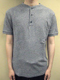 ポルトガルの片田舎で100年近く前の吊り編機を使って生地から縫製迄一貫して行うカットソー専業ファクトリーのファクトリーブランドであるアンビエント。日本以外でこの編機が現存しているところはほぼ無いといわれていましたが、ポルトガルで大切にメンテナンスを重ねて使用している貴重な編機を使って天竺・裏毛・鹿の子等のシングルジャージーを編み立てています。旧型の織機である事で日本においてはその独特の風合いを産むヴィンテージ的な価値と生産性の低さからベーシックな半袖Tシャツで1万円近くしてしまいますが、ポルトガルでは新しい物の方が価値があるという価値観からか、大変にリーズナブルな価格設定で生産しています。特にこの天竺編みにおいては吊り編機の中でも古い編機の為、生地が斜めに斜行します。スラブ糸を使って裏側の肌に接する面に凹凸が出来る様にし、吊り編機で編んだ風合いと合わせてレトロな見た目と汗をかいても快適な肌触りを両立させています。ベーシックでシンプルなヘンリーネックTシャツですが、その分生地感を楽しんで頂けます。そして長期の実用に耐える様ヘンリーネックのボタンの部分を布帛に切替えて繰り返し使用した際の伸びがない様にしております。綿100%、MADE IN PORTUGAL、サイズはS(身幅:47cm着丈:66cm袖丈:42cm)とM(身幅:49cm着丈:69cm袖丈:44cm)の2サイズです。