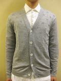 生地の製造工程から縫製工場に至る迄服作りのノウハウに精通した業界屈指のマイスターであり、その評価は名だたるコレクションブランドや大手セレクトショップが特にニット・カットソーの企画生産を依頼していることからも判るほど。そんな達人の手掛けるオリジナルブランドがこのドリーミングオブザシャイニングスター(以下長いのでDSSで)。このカーディガンはそんなDSSのこだわりがよく反映された1着で、殊に評価の高いニットの中でもコストパフォーマンスの高いエントリーモデルといったポジションにあります。使われている糸は12Gとハイゲージの糸の中では極端に細い物ではありませんが、48番双糸を2本取りした物を使って12Gにしているので非常にしなやかで上質な風合いです。カーディガンなのでシャツの上に羽織るにしろカットソーの上に羽織るにしろとにかく一番外に着るか中間着として使うミドルアウターなので、このぐらいのゲージが程よく着回し易いです。そんな糸を使って星柄のジャガード編みにしていますが、通常の物がすべてリンキングによる編みで出来ているのに対し、今回は敢えてカットソー縫製を取り入れて、熟れたプライスを実現。とはいえ着心地は今迄同様のレベルを維持しているので、この機会に手に入れて本物の素晴らしさを実感していただきたいものです。ウール100%、MADE IN JAPAN、サイズは1(身幅:47cm着丈:63cm袖丈:80cm)2(身幅:49cm着丈:68cm袖丈:85cm)の2サイズです。
