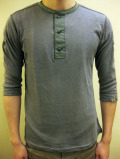 今のニューヨークで最も評価の高いセレクトショップであるノムデゲールの展開するオリジナルコレクション。アメカジでありながらも洗練された、まさに旬の東海岸スタイルを体現するアイテム構成で高い評価を得ています。その時々のテイストに合った国で縫製をしていましたが、今シーズンからニューヨークの本店を含め各国で展開するコレクションの生産を日本で縫製する事になりました。日本の縫製クオリティが高く評価された故でしょう。この7分袖のTシャツは、非常に肌触りの良いガーゼ天竺を使い、長めの前立てのヘンリーネックになっています。袖も長さを調整出来る様になっていますし、使い易さと着心地を両立したハイレベルな1着です。綿100%、MADE IN JAPAN、サイズはS(身幅:50cm着丈:60cm裄丈:60cm)とM(身幅:54cm着丈:64cm裄丈:62cm)の2サイズです。